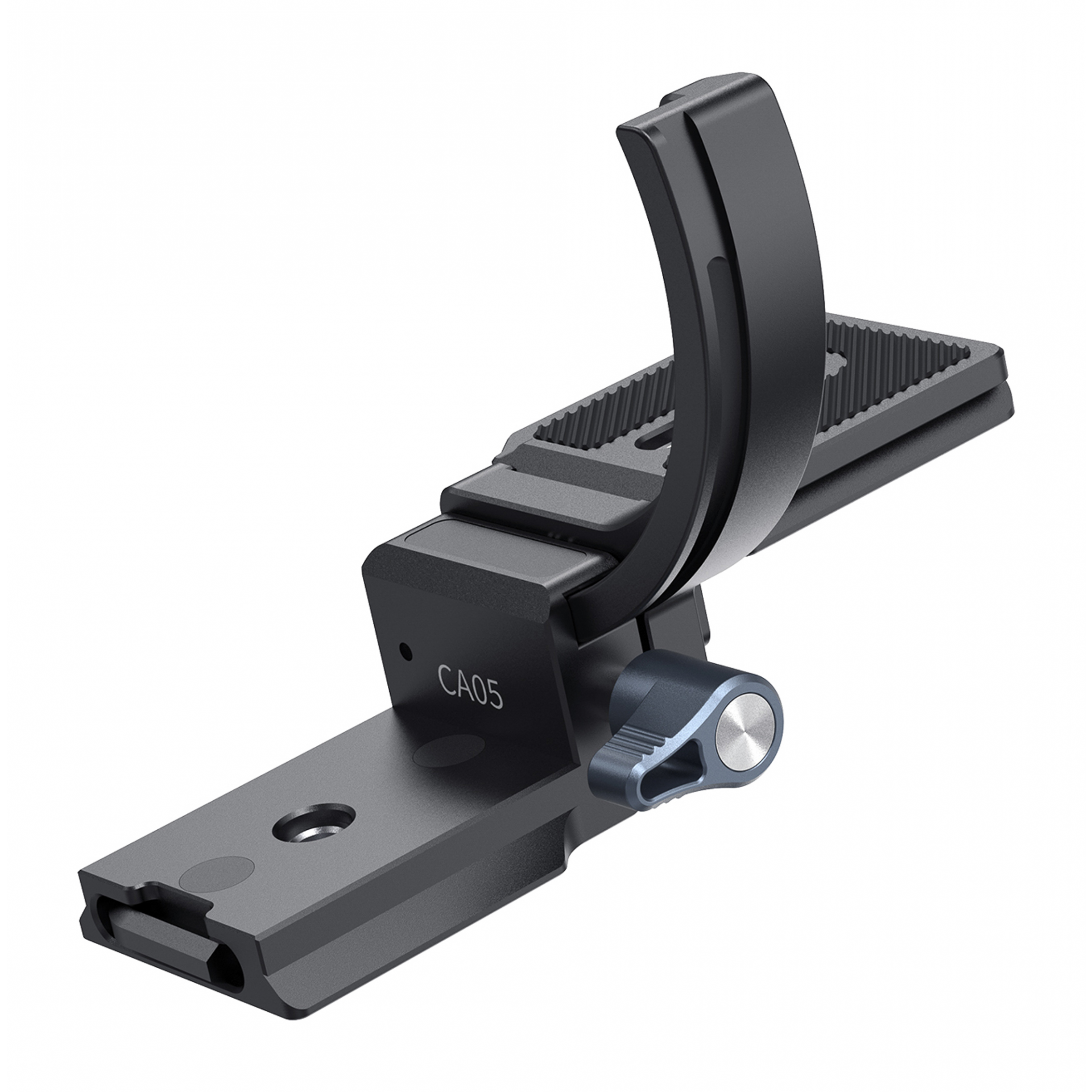 Ulanzi CA05 to solidne mocowanie statywowe typu „lens collar” przeznaczone do obiektywów o średnicy 75 mm. Doskonale sprawdza się podczas pracy z cięższym sprzętem, odciążając bagnet aparatu i zapewniając większą stabilność oraz równowagę. Dzięki wbudowanemu mechanizmowi obrotowemu umożliwia szybkie przełączanie między kadrem poziomym i pionowym. Nie musisz przy tym zdejmować aparatu ze statywu. Kompatybilność z systemem Arca-Swiss oraz obecność gwintów 1/4” i 3/8” zapewnia bardzo szeroką kompatybilność. Ulanzi CA05 wyróżnia się regulowaną wysokością platformy, aluminiową konstrukcją odporną na zarysowania i wagą na poziomie zaledwie 207 g.