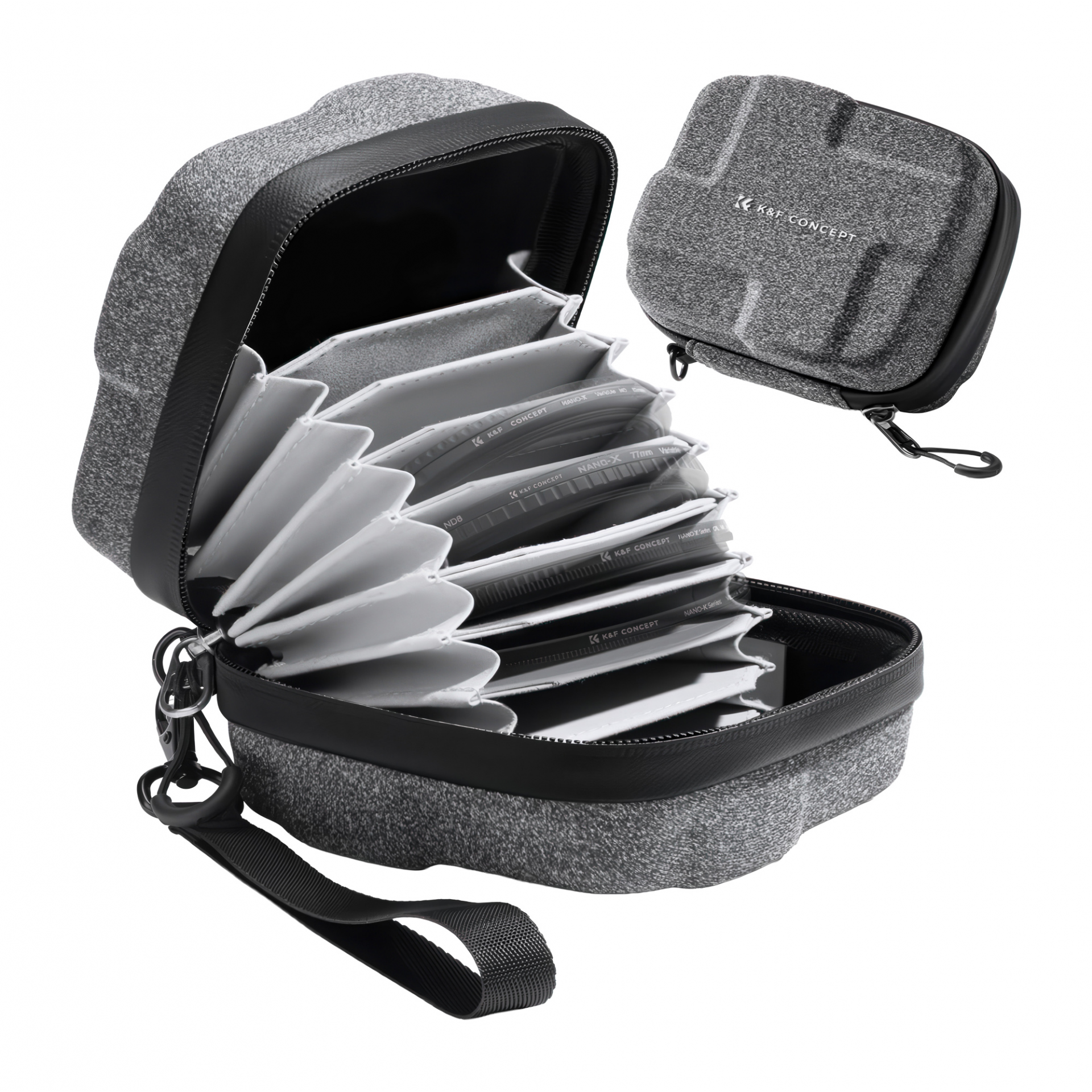 Smukła konstrukcja pokrowca K&F Concept Hard Shell Filter Case - 95 mm łatwo mieści się w torbie fotograficznej, plecaku albo większej kieszeni. Dołączony do zestawu, odpinany pasek na nadgarstek pozwala nosić etui jak samodzielny organizer, co przydaje się na spacerach, w trakcie realizowania fotoreportaży lub podczas robienia zdjęć w podróży, gdy nie chcesz rozkładać całej torby.