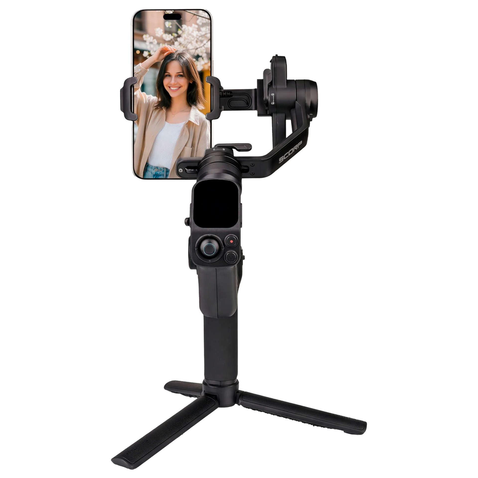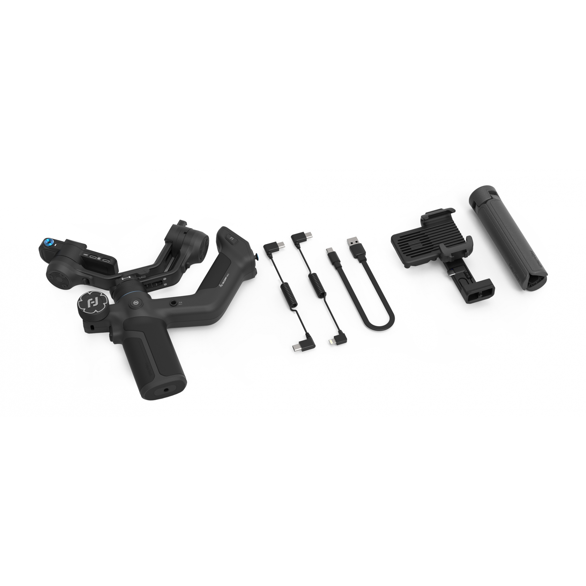 - FeiyuTech Scorp mini 3 Pro – najbardziej rozbudowana wersja gimbala. Jej głównym wyróżnikiem jest odłączany uchwyt, który pełni jednocześnie funkcję bezprzewodowego pilota zdalnego sterowania.